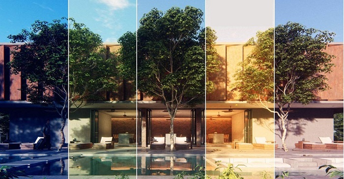 لومیون دارای تنظیمات خورشید با توجه به ساعات مختلف شبانهروز است و نور و سایه طبیعی را در رندرهای شما ایجاد میکند.