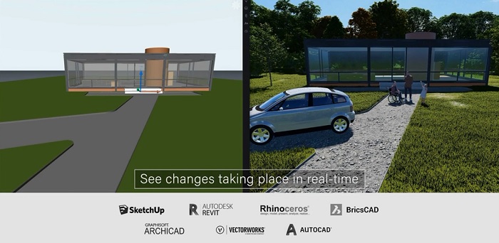 Lumion LiveSync امکان فوقالعادهای برای اتصال لومیون به دیگر نرمافزارهای معماری است و امکان رندر سریع و همزمان در نرمافزارهای مدلسازی سهبعدی را فراهم میکند. دیگر لازم نیست که فایل اسکچاپ یا رویت را به درون نرم افزار لومیون بیاورید. تنها کافی است که پلاگین LiveSync را در نرمافزارهای اسکچاپ، رویت، آرشیکد، راینو، آتوکد و Vectorworks نصب کنید تا لومیون را در فضای آن نرمافزارها باز کنید.